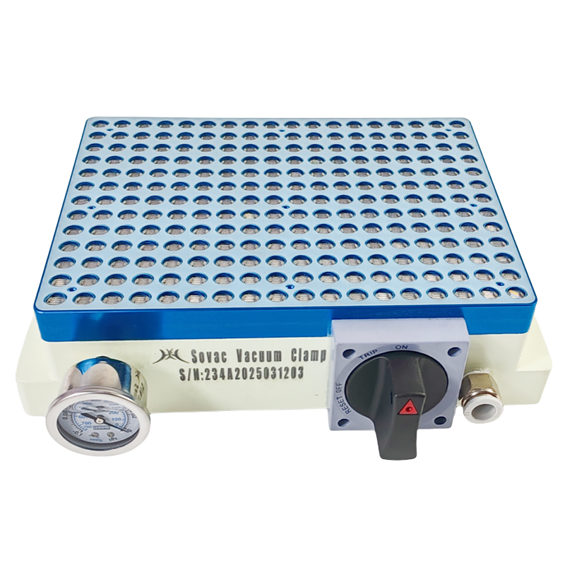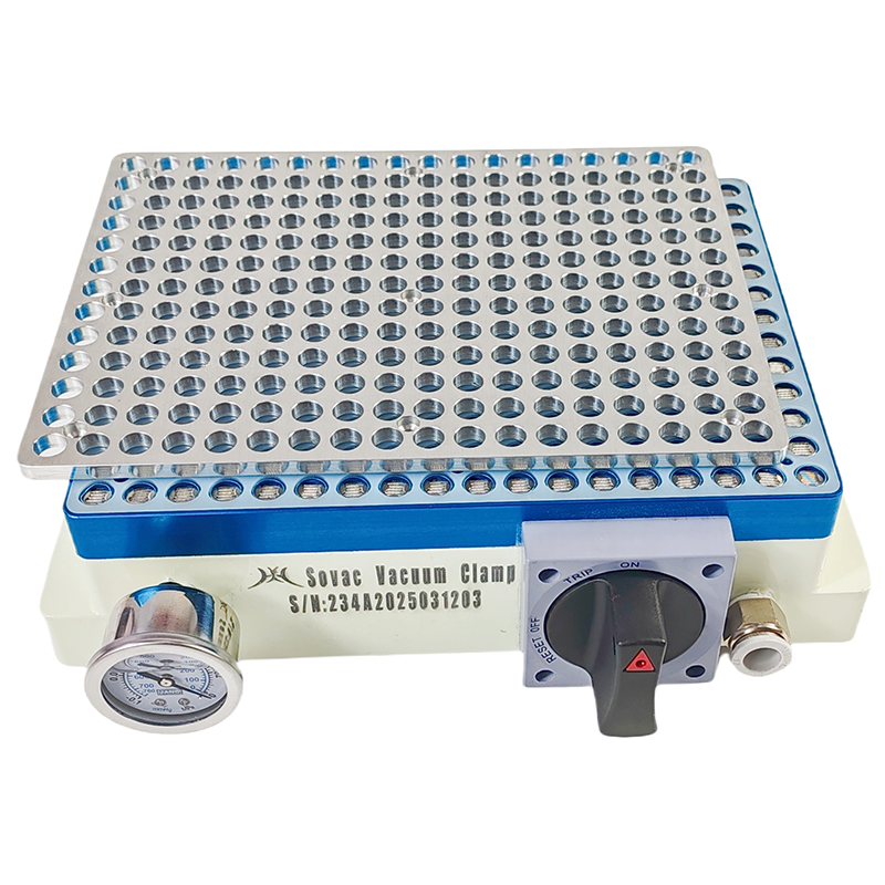 The premium automatic valve type multi-hole vacuum table(Premium Vacuum Table), we can also call it vacuum table without gasket. Used in CNC machining centers and engraving machines, Adopts an independent automatic valve in every suction hole. When the surface of the suction hole is not covered by the workpiece, the internal valve of the suction hole automatically closes. When the surface of the suction hole is covered by the workpiece, the internal valve of the suction hole opens. Form an air pressure difference on the upper and lower sides of the workpiece, and the workpiece is firmly sucked on the surface of the vacuum chuck table. The Irregular shaped thin sheet workpiece can also be sucked easily. Even though the workpiece is milled through, which does not affect the normal work of the suction hole in other places that are not milled. The internal valve is a non-spring valve, to ensure that the vacuum table suction hole will not be blocked in the face of a lot of powdery debris which produced by aluminum alloy, ceramic, quartz, glass, glass fiber and graphite. Compared with the Professional Vacuum Table, There are denser suction holes and stronger suction. The built-in air storage cabin technology ensures that only one switch is enough to control all suction holes. At the same time, the suction force of a single suction hole is improved.